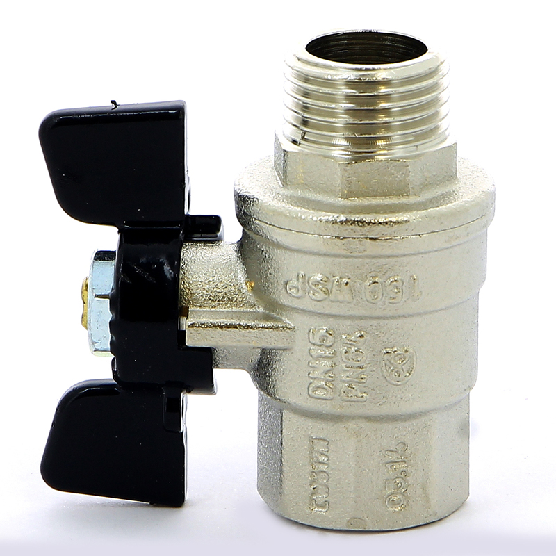 Кран шаровой латунный, полнопроходной, резьбы наружная - внутренняя по ISO 228/1.