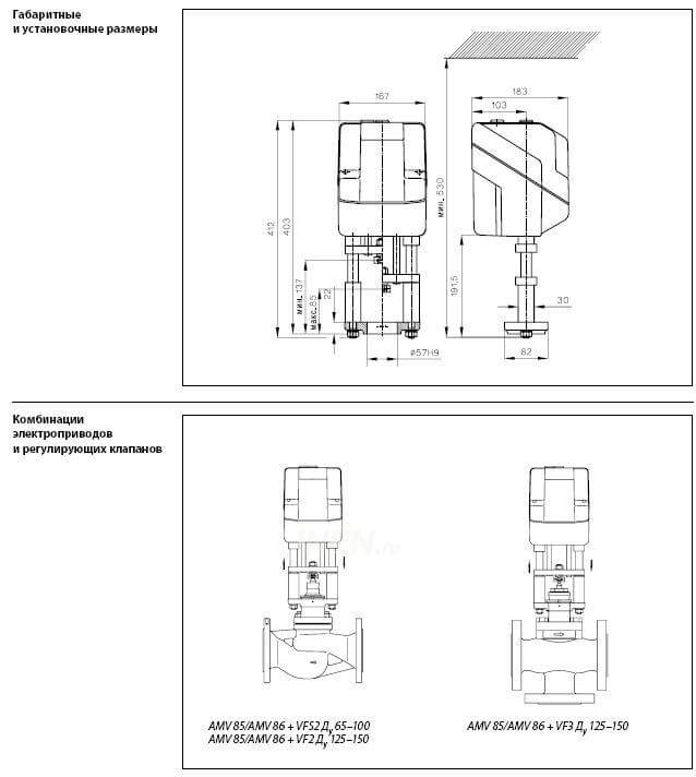 Электроприводы AMV 85 и AMV 86 предназначены для управления регулирующими клапанами VF3 Ду = 125–150 мм и VFS2 Ду = 65–100 мм.