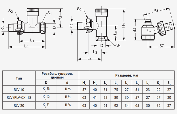 Корпус клапана по внешнему виду и техническим характеристикам идентичен стандартным клапанам RLV Ду =15 мм.