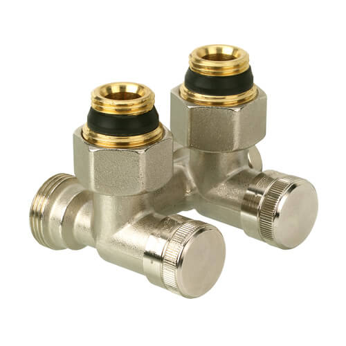 изготавливаются из латуни с никелевым покрытием в прямом и угловом исполнении.С помощью специальных переходников может присоединяться к штуцерам отопительного прибора с внутренней резьбой G ½ или