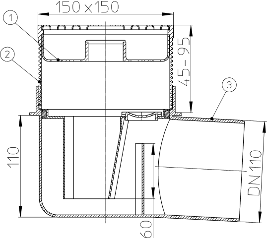 2. Выпускной патрубок трапа HL72N предназначен для соединения с любой канализационной раструбной трубой из ПВХ или ПП (REHAU, WAVIN и т.д.). Если для ливневой канализации применяются стальная или