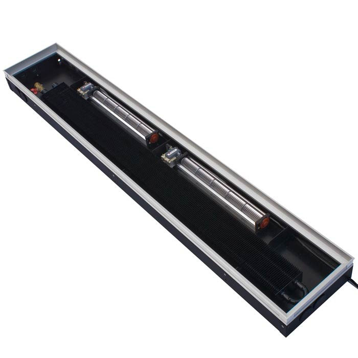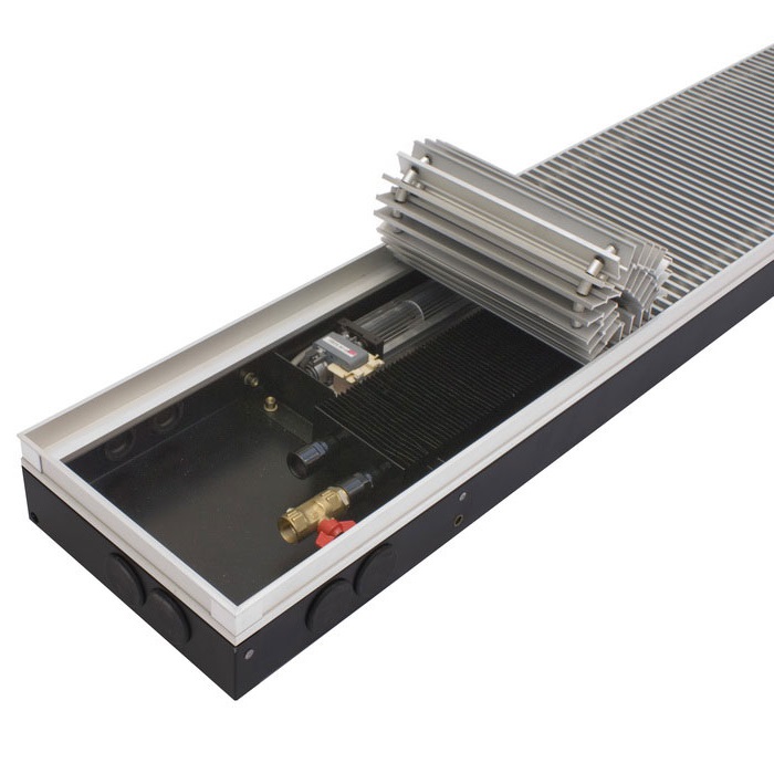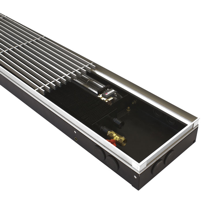 Внутрипольные конвекторы серии ITTB с принудительной конвекцией имеют небольшую высоту корпуса , потому их встраивают в пол с маленькой глубиной.