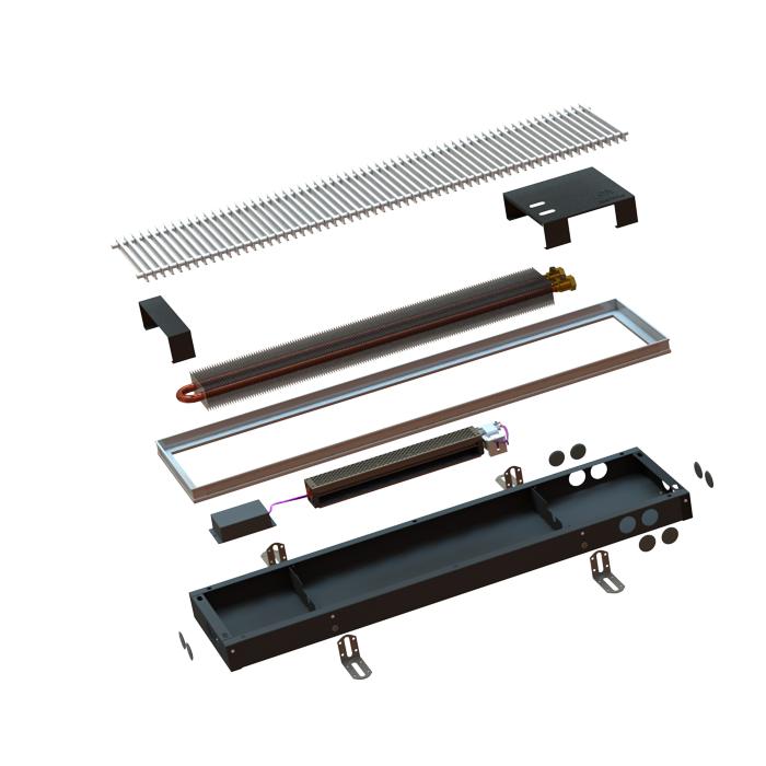 Внутрипольные конвекторы серии ITTB с принудительной конвекцией – это конвекторы, встраиваемые в пол, оснащенные вентиляторами, работающими от электросети. Вентилятор позволяет увеличить тепловую мощность, что делает отопление помещения более динамичным.