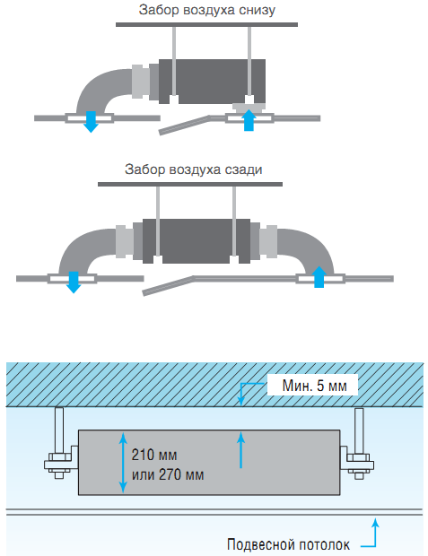 воздуховодов. В стандартном исполнении воздухозаборное отверстие расположено сзади; дополнительно может быть организован забор воздуха снизу.