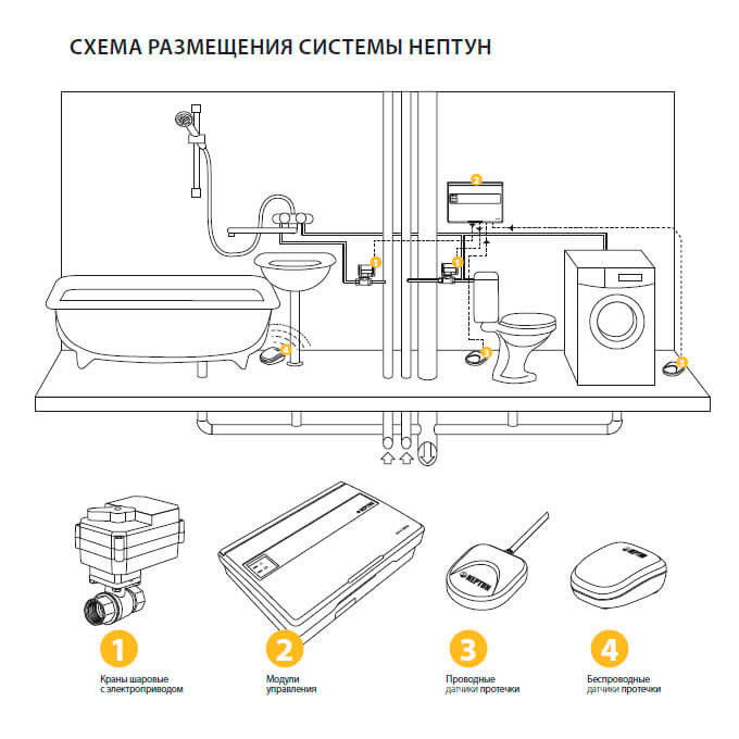 Система контроля протечки воды Neptun Base предназначена для своевременного обнаружения и локализации протечек воды в системе водоснабжения и отопления жилых домов, коттеджей, офисных зданий, магазинов.