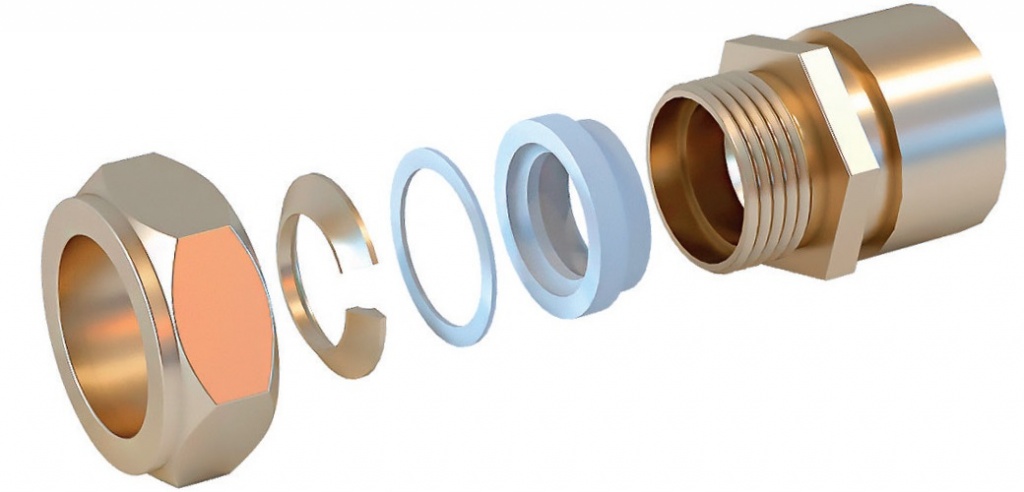 Это позволяет осуществить монтаж быстро и без риска рассыпать части фитинга и потерять его детали.