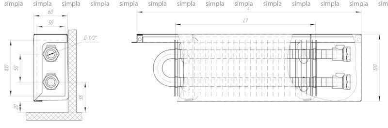 устанавливается на полу вдоль стены, в результате чего помещение равномерно обогревается. Такие конвекторы оптимальны для помещений, где нежелательна установка настенных или внутрипольных приборов