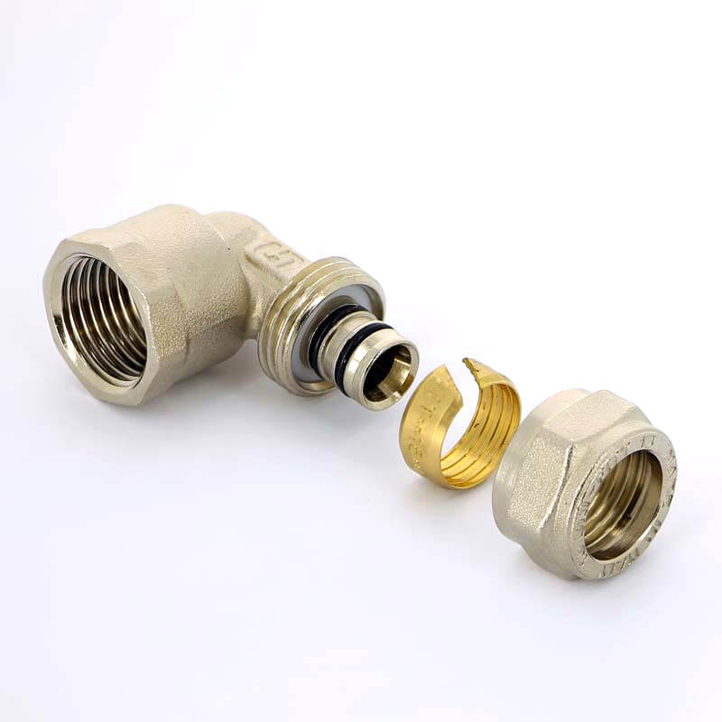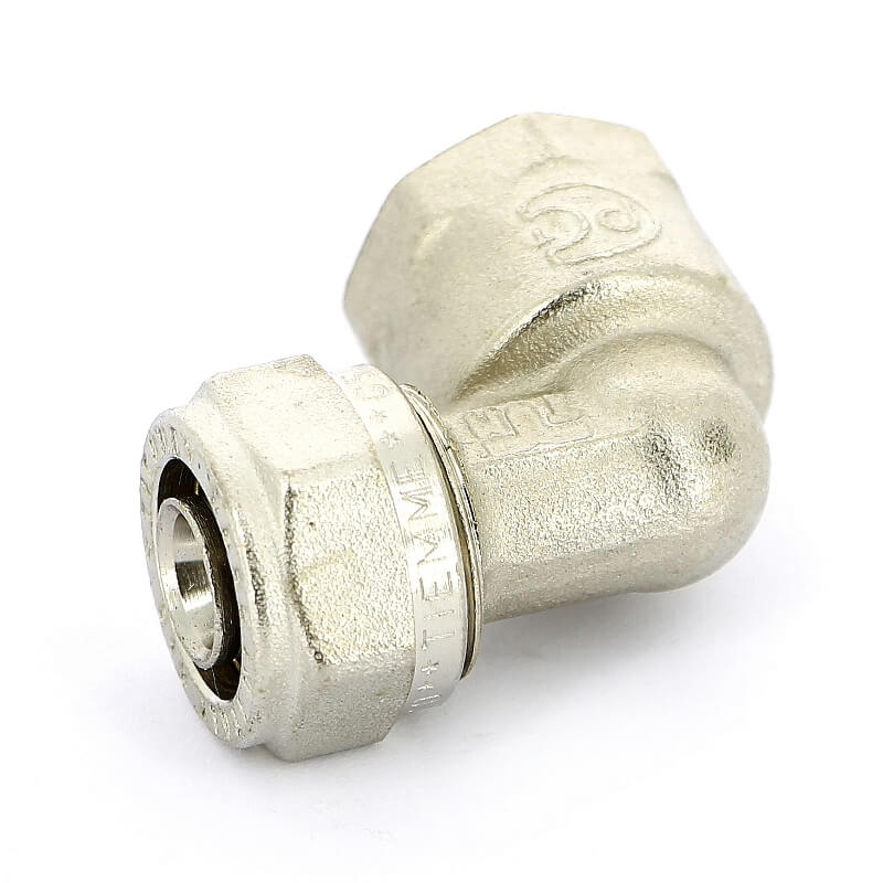 Угол обжим никелированный TIEMME  - простой надежный фитинг для изменения направления трубопровода, применяется для соединения металлопластиковых и РЕХ-труб одного диаметра при монтаже систем холодного и горячего водоснабжения, напольного и центрального отопления, для распределения воздуха и сантехнического оборудования, при прокладке технологических трубопроводов, пневмопроводов, транспортирующих вещества, к которым пластик химически стоек.