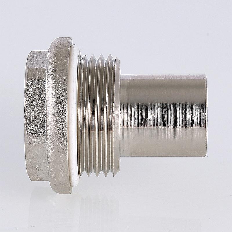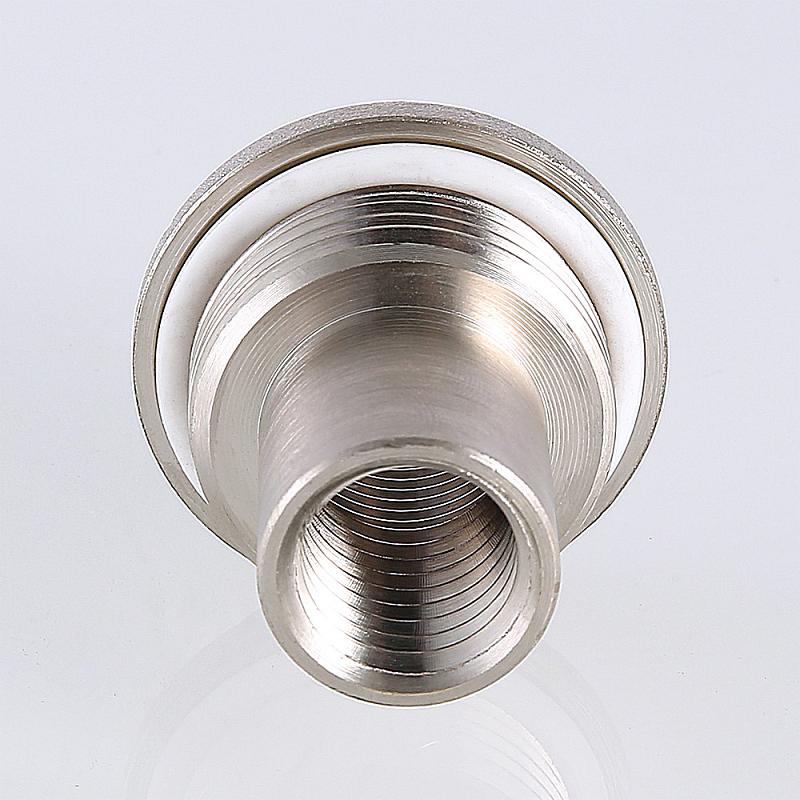 никелированную радиаторную футорку, дополненную патрубком с внутренней треугольной резьбой крупного шага. В этот патрубок ввинчивается отрезок металлополимерной трубы с наружным диаметром 16 мм.