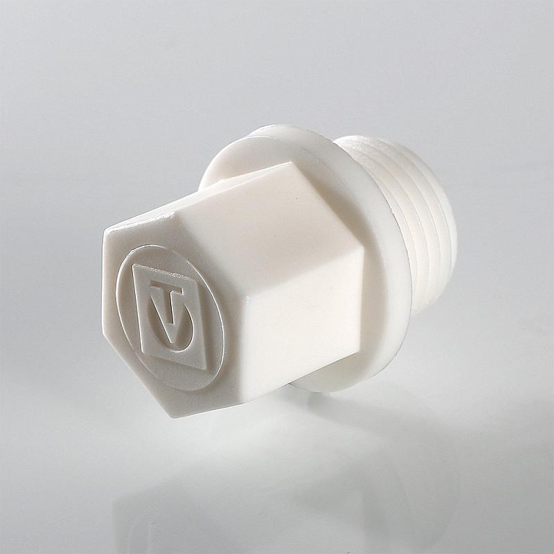 (VTp.791.0) Пробка полипропиленовая с резьбой предназначена для герметичного перекрытия трубопровода в неиспользуемых патрубках фитингов или арматуры с внутренней резьбой. Имеет шестигранный корпус, под гаечный ключ, и реборду.